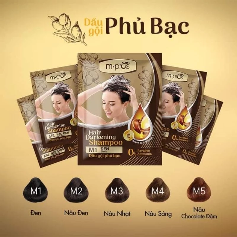 👉 Dầu gội nhuộm tóc thảo dược đen/ nâu đen phủ bạc 100% M.pros