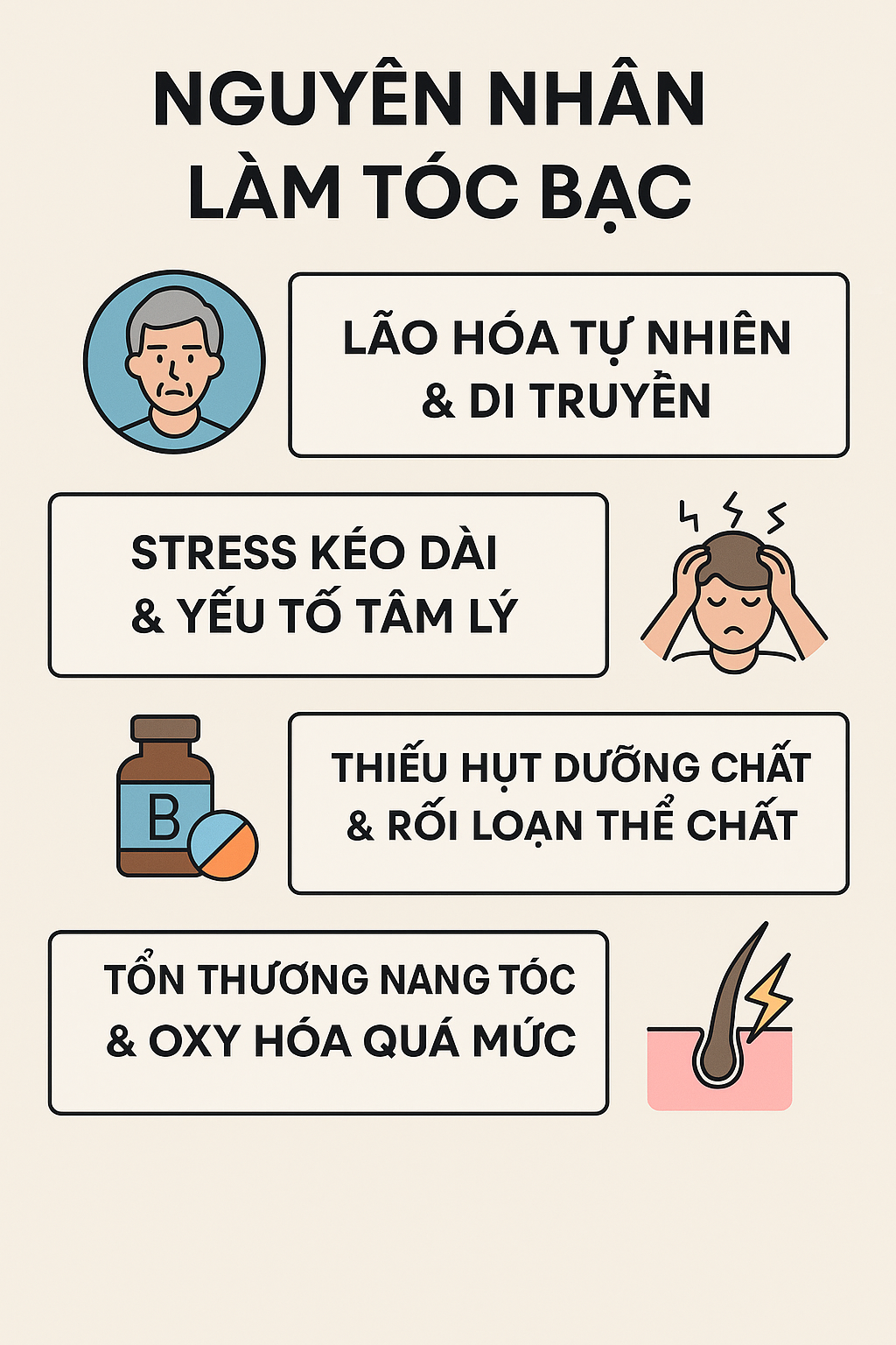II. Nguyên nhân làm tóc bạc